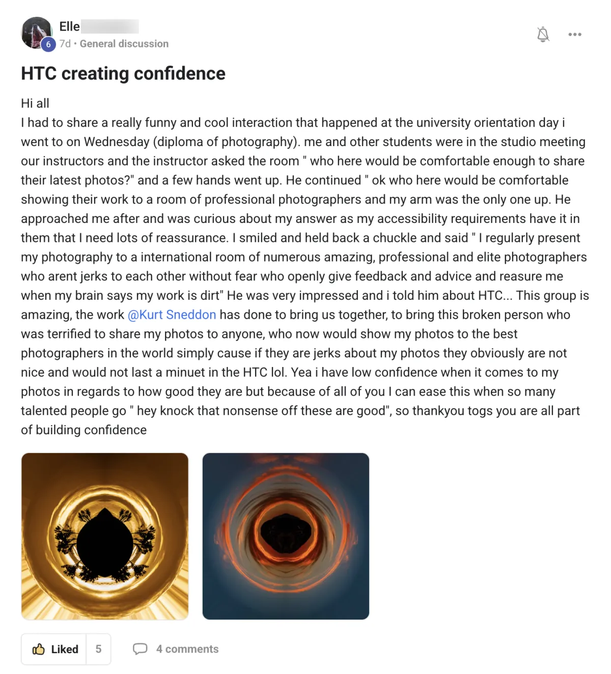 As a newbie to photography, I wanted to find a group of supportive photographers to get feedback and to talk without judgement. Reddit can be overwhelming for newbies and I’m so glad I found Humble Togs. I posted photos for critique and received a super helpful, detailed video with constructive feedback, provided in a friendly manner. Highly recommend!